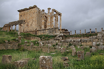 Today we head south of Annaba, stopping to see the ruins of the ancient site of Thubursicu Numidarum (modern Khamissa). The ruins include a theatre, grand forum and bath complex. We then continue to visit the ruins of Madaure. This site has a well-preserved Byzantine fortress which incorporates the ancient Roman forum of the town. Overnight Tebessa.