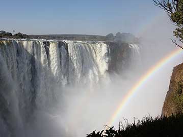 This morning we head north to Victoria Falls which is situated on the Zambezi River and surrounded by the Victoria Falls National Park. We visit Victoria Falls, or Mosioa Tunya (the Smoke that Thunders), which was named by David Livingstone, and is one of the Seven Natural Wonders of the World. At 1700m wide and around 100m high, this is the world's largest sheet of falling water and a memorable sight. Overnight Victoria Falls.