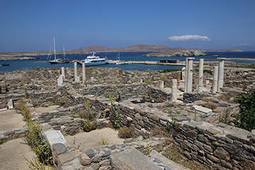 Today we take a short boat ride to the island of Delos, famous for its cult of Apollo and Artemis. On arrival we walk through the theatre quarter where we see the magnificent mosaics in the Hellenistic period houses. We also see the terrace of the foreign gods. After a picnic lunch we explore the sacred quarter including the Temple of Apollo. Overnight Mykonos.