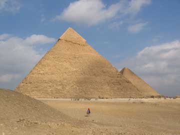 In the morning we visit Giza where we see the Pyramids. We have a close-up view of the Great Pyramid of Khufu and then visit the pyramid of Khafre. Lunch is spent at a restaurant in Giza. Afterwards we explore Khafre's impressive Valley Temple and see the Sphinx. Overnight Cairo.