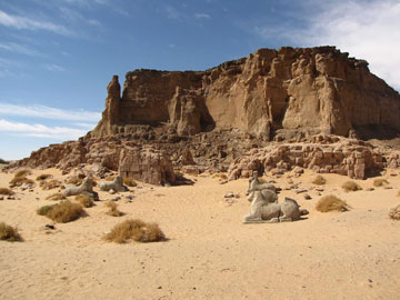 Our program then takes us south to the town of Karima which will be our base for a few days exploration of the local antiquities. Our accommodation is the very pleasant ‘Nubian Resthouse’ in Karima, an island of luxury in the desert. We visit the site of Jebel Barkal, where the Kings of the 25th Dynasty built temples to the Egyptian gods Amun-Re and Mut. We explore the local antiquities Museum and visit the ancient cemetery of el Kurru where the Kings were buried under pyramids in painted underground chambers. Two tombs, belonging to King Tanutamani and his mother Qalhata, are open. We also see an area of the open desert with evidence of fossilised wood.