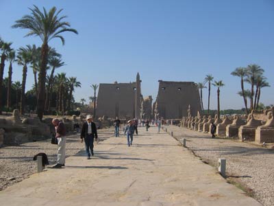 The following day we crossed the river on the ferry and then caught the bus north to see the ruins of the temple of Sety I at Abydos. Everyone enjoyed the superb wall paintings in the main temple and then we crossed the desert to have a quick look at the equally fine temple of Ramesses II. On the way back to Luxor we stopped at Dendera to wander in awe at the colossal pronaos of the Temple of Hathor. The following day we spent most of the day wandering around the dramatic ruins of Karnak, home to the cult of Amun-Re. No one can see this temple and not be impressed by the enormous dimensions of the hypostyle hall, or be entranced by the dimly lit statue of Hathor in the Temple of Ptah. That evening we took a carriage ride through the streets of Luxor to a new restaurant called the Sofra Restaurant, and enjoyed a very pleasant meal (even if there was no alcohol available!). The carriage drivers elected to have a race down the street on our way back to our hotel which left our hearts racing as we hung on for dear life. Our final day in Luxor was spent at Medinet Habu, one of the most beautiful places in Egypt (and my personal favourite!). We had frequently had lunch opposite the temple while exploring the West Bank at Luxor and now finally we went inside to see the superb wall paintings. Next we headed to the Valley of the Queens to see three of the spectacularly panted royal tombs.