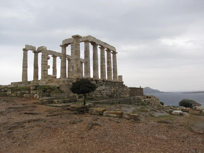 We began our investigations by flying into Athens and picking up our rental car. We made our way to the south coast of Attica to visit the remains of the picturesque Temple of Poseidon on the end of Cape Sounion. It was a dark and rather stormy day, which seemed entirely suitable since the beautiful Doric shrine was designed to give aid to travellers of the Aegean. We stayed overnight in a small local hotel and the following morning headed NE to the ancient shrine of Artemis at Brauron. Set in a rural landscape the compound preserves evidence of ancient dining halls and temple.
