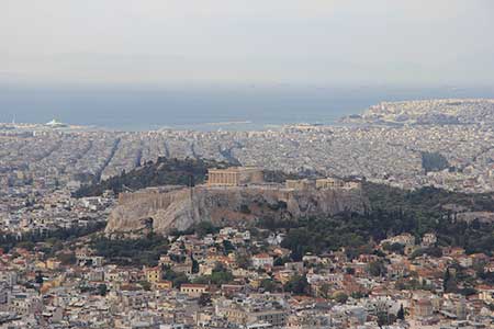 The next day we explored the remarkable archaeological ruins of Akrotiri, a Minoan era town which was preserved by the eruption of the Thera volcano in 1628 BC. This had recently re-opened after the construction of a new wooden roof over the site – the end result is impressive. In the afternoon we saw the Fira Archaeological Museum which contains numerous artefacts from Akrotiri. We then flew to Athens in the early evening.