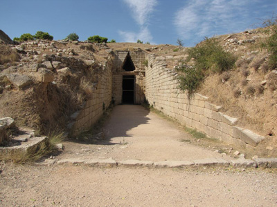 The following morning we travelled north to the fascinating site of Nemea which is dominated by the recently reconstructed Temple of Zeus. Nemea was the site of an important pan-Hellenic athletic festival and we saw the nearby stadium which still retains evidence of the original mechanism which operated the starting gates. We drove a short distance to Mycenae where we had a picnic lunch. We saw the impressive Late Bronze Age city and tombs. The enormous tholos tombs are particularly impressive as is the famous ‘Lion Gate’, and we enjoyed the descent into the famous ‘water tunnel’ by torch light. The site museum is excellent and has a fine collection of artefacts from the excavations.