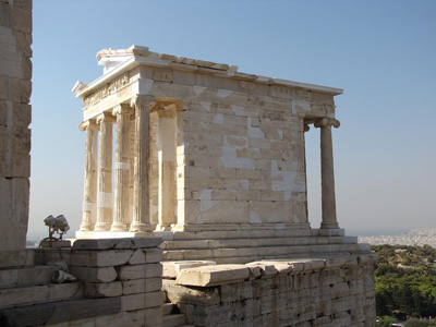 On the 15th September we flew to Athens and checked into the Hermes Hotel located in the fascinating Plaka district. We had 5 fascinating days in this wonderful city. During this extended stay we toured the remarkable collection of antiquities held in the National Archaeological Museum including the Mycenaean treasures, the wonderful sculpture, the extensively re-vamped collection of Greek pottery and the display of wall paintings and artefacts from Akrotiri on Santorini. A day was also set aside to visit the Akropolis of Athens and the newly opened Akropolis Museum. Our walk began with a visit to the Temple of Olympian Zeus at the base of the Akropolis. We then saw the Theatre of Dionysus and the Asclepius Shrine, before climbing to the summit of the Akropolis to see the recently restored Parthenon and the Erechtheion. The Temple of Athena Nike has recently been re-erected. The views across the city were stunning. The new Akropolis Museum contains a stunning collection of sculpture from the area.