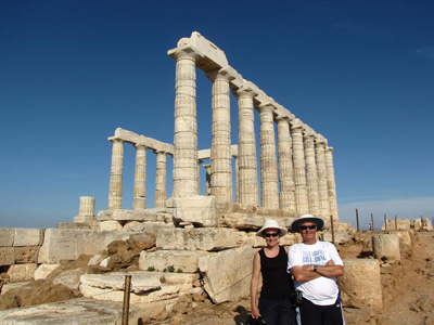 Our final visit was to the south coast of Attica to visit the remains of the picturesque Temple of Poseidon on the end of Cape Sounion. This beautiful Doric shrine was designed as a prominent landmark which could be seen from the sea and hence give aid to travellers of the Aegean. It commands a stunning view across the Saronic Gulf. Our group had enjoyed the major highlights of the history of Greece very much.