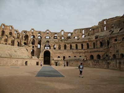 Our final excursion was to El Jem, location of the ancient Roman city of Thysdrus. In the morning we saw the Museum of El Jem which houses one of the world's best collections of Roman mosaics. A highlight was the reconstructed 'House of Africa' which enables the visitor to walk through an ancient Roman Villa. In the afternoon we explored the awe inspiring El Jem amphitheatre - this still retains its underground cells for animals and gladiators. On the last day of the tour we travelled by bus to Tunis where we had a final chance to do some shopping. A pleasant farewell lunch was had at a restored merchant's house (Dar el-Jeld) - we all decided that we would like a similar house in Australia, staff included!