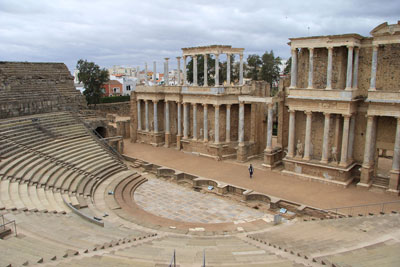 We then drove through the open country of Extremadura, dotted with castles, and stayed in the small city of Merida. This small place was known to the Romans as Augusta Emerita, the capital of the Province of Lusitania. It preserves a wonderful array of monuments from the Roman period. We saw the Roman Bridge down by the River Guadiana and the Moslem fortress, the Temple of Diana (which was converted into a Renaissance mansion), the Museum of Visigothic art, the Roman aqueduct and the National Museum of Roman Art with an amazing collection of sculpture and other finds from the site. A highlight, however, was the Roman theatre and amphitheatre which are well restored and give the visitor an impression of their original condition.