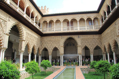 The fabulous Alcazar of Seville was an undoubted highlight of the trip to Spain. This was the 14th Century royal palace constructed by Pedro the Cruel. It contains some of the best preserved examples of mudejar architecture (work done by Muslim artists under Christian rule) including delicate plaster work and inlaid wooden ceilings. The adjoining gardens are a peaceful retreat and include a number of Muslim style pavilions. We also very much enjoyed seeing a performance of flamenco in the old quarter, and saw am atmospheric evening of bullfighting - this was much more impressive and exciting than expected and really brought the feel of the ancient Roman arena alive.
