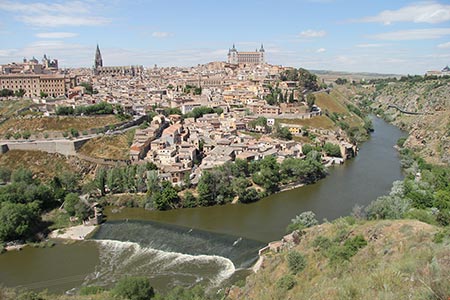In the morning the sun came out - we walked along the walls and went to the Church of St Vincent which contains a fantastic Gothic grave. We also saw the monastic centre where St Teresa lived - there is nothing like Catholic marketing! In the afternoon we stopped off to see the Monastery of Santo Tomas where Juan, the son of Isabella and Ferdinand, is buried. Our road then took us through the mountains down to Toledo where we checked into our hotel. This was the old Bishop’s Palace built into the walls of the old quarter. We walked down to the stunning medieval St Martin Bridge across the Tagus River.
