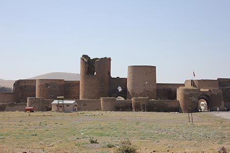 On the 3rd September we headed east through broad grasslands to visit the ruins of the ancient Armenians capital Ani, located on the border of modern Turkey. The walls of the ancient city are very impressive and we spent the day exploring the ruins of the old churches. A few of us climbed up to see the citadel with the ruins of the royal palace. We largely had the site to ourselves - lunch was in the local restaurant. We stayed overnight in Kars and then the following day drove southwards through the dramatic volcanic landscape. There was still some snow on the summit of Mt Ararat which we saw very clearly (it is often in mist). We had a picnic lunch in a camp ground where we fed the chooks. After lunch we saw the superb Ishak Pasha Palace near Dogubeyazit, a magnificent 18th Century palace overlooking the pass which leads to Iran. A major restoration program has seen the roof repaired. We also stopped to see the more ancient castle and Urartian inscriptions (8th Century BC). Our journey south took us to the Muradiya waterfall where we had some tea. It was dark by the time we checked into our hotel on Lake Van.