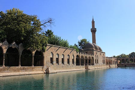 Our road then took us westwards through flat desolate country. We stopped to have a coffee under some trees in one small town and watched some children herding sheep down the main street. Our journey led us past a number of ancient ‘tell’ sites, remnants of ancient settlements. We drove to Gobekli Tepe to explore the pre-Neolithic stone temples. The oldest man made religious buildings in the world, they preserve fascinating relief scenes of totemic animals. We checked into our hotel in Sanliurfa (ancient Edessa). The following day (10th September) we explored the shrines of Abraham where we met some Syrian refugees and bought them some lunch - they spoke no Turkish and I felt they had very little understanding of how they could get help from the authorities. We went for a walk in the ancient markets where Rachel tried on the local purple scarf - very fetching! We had some coffee in a mediaeval han (Gumruk Hani) and then headed south to visit Sultantepe, an ancient tell which sits on the edge of the Syrian plain. We also saw the small museum of Urfa where artefacts from the local sites are housed.