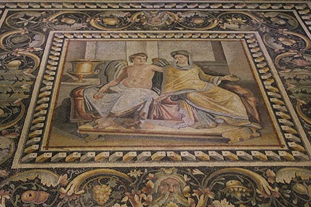 We stayed the night in Adiyaman. In the morning we drove down off the Anatolian plateau to the ancient city of Gaziantep where we checked into our hotel, an old converted Ottoman han - it was fascinating to consider which merchants had passed this way in earlier times. We had some lunch and then went to the Gaziantep Museum, a new museum showcasing the stunning Roman mosaics from the nearby site of Zeugma. The ruins were partially flooded as a result of the construction of the Birecik Dam, so the 2nd and 3rd Century mosaics were transferred to the museum and have been wonderfully displayed. In the evening we walked through the old quarter of town, looking at the covered shops. We had a pleasant dinner and had an opportunity to talk to some more Syrian refugees who were employed as waiters.