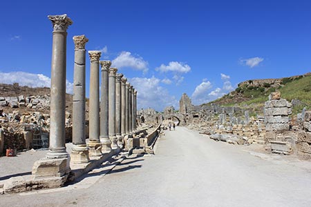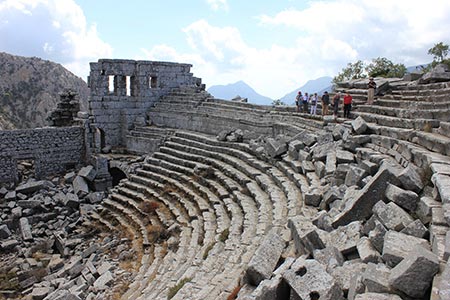 On the 16th September we headed south, following a spectacular gorge back through the Taurus Mountains. We headed to the ancient site of Side where we had some lunch overlooking the harbour. The antiquities at the site are impressive and include a wonderful theatre and recently restored agora, as well as a stunning temple to Apollo. We then headed to Antalya where we checked into our hotel (our base for 4 nights) - the hotel lay within the old city walls and had wonderful views from the breakfast terrace overlooking the ancient harbour and down the coast to the mountains in the distance. We had a very pleasant dinner at the water's edge. In the morning we headed to the ancient city of Perge - it preserves an impressive ancient stadium, agora and Roman bath complex, and recent restoration works have really improved the gymnasium complex and palaestra. We also went to Aspendos to see the breathtaking Roman theatre, almost perfectly preserved. We had a look at the Roman aqueduct which runs across the landscape and had some gozleme at a pleasant local café.